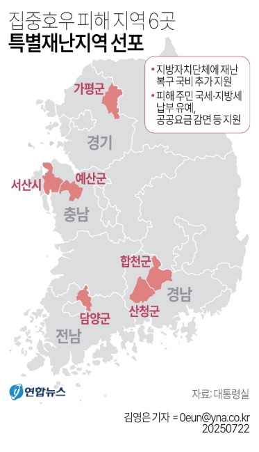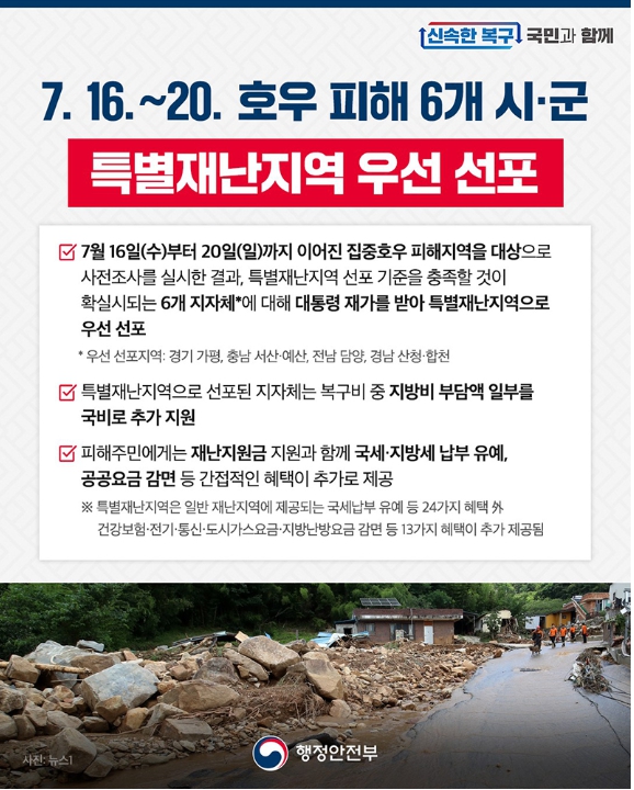 📍 2025년 7월 집중호우 피해 특별재난지역 우선 선포 (6곳)