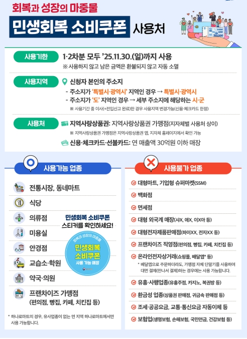 - 1차 지급 소비쿠폰 사용 기한: **2025년 11월 30일(일)**까지