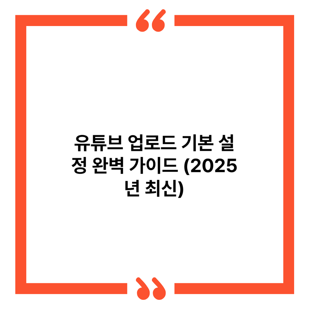 유튜브 업로드 기본 설정 완벽 가이드 (2025년 최신)