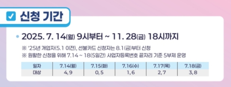 ※ 2025년 개업자(5월 1일 이전) 및 선불카드 신청자는 8월 1일부터 신청 가능